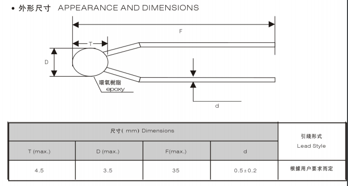 高精度玻封NTC熱敏電阻 BWF153J3950FA-A