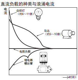 接不同負載的直流電路,電路中的浪涌值和電路中額定電流值的倍數關系如下圖: