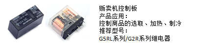 (1)產(chǎn)品推廣一:售貨機(jī)控制板,推薦使用歐姆龍功率類繼電器,主要實(shí)現(xiàn)販賣機(jī)控制商品的選取、加熱、制冷等功能。