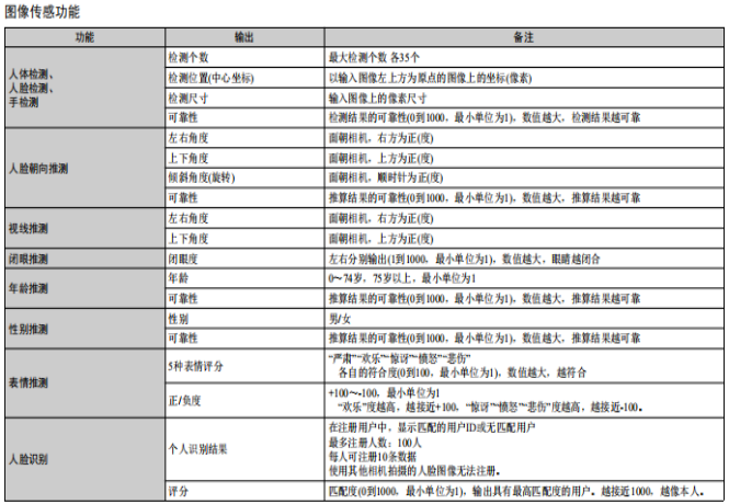 這款人體識(shí)別圖像傳感器視覺(jué)組件(HVC)是歐姆龍“OKAOTM Vision”圖像傳感技術(shù)的組合產(chǎn)品,可通過(guò)攝像頭模塊識(shí)別人體眨眼、視線方向、表情、性別或年齡。 其較大速率下的響應(yīng)時(shí)間是第一代HVC-P的10倍。 此外,還有兩種鏡頭可供選擇,長(zhǎng)距離50度型(B5T-007001-010)和廣角90度型(B5T-007001-020)。客戶(hù)可根據(jù)檢測(cè)距離和FOV(視場(chǎng))做出選擇。“HVC-P2”能夠檢測(cè)和推定對(duì)象的屬性和狀態(tài),而不會(huì)使其察覺(jué)攝像頭的存在,同時(shí)還能根據(jù)用戶(hù)需求提供對(duì)應(yīng)服務(wù)。