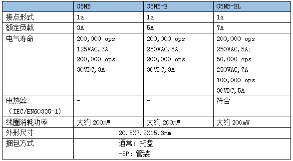 高接點負載 G5NB-E(5A 100Kops), G5NB-EL(7A 50Kops)