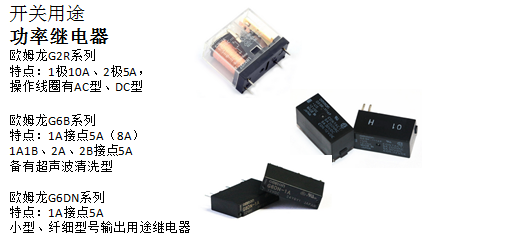機床工作的過程中,通常需要通過電源、線圈、馬達、通電、通用外部輸出來進行運動的傳輸,此時繼電器主要起開關(guān)作用,并且對繼電器觸點的開關(guān)容量、觸點可靠性、壽命要求比較高。可以選用以下歐姆龍功率繼電器: