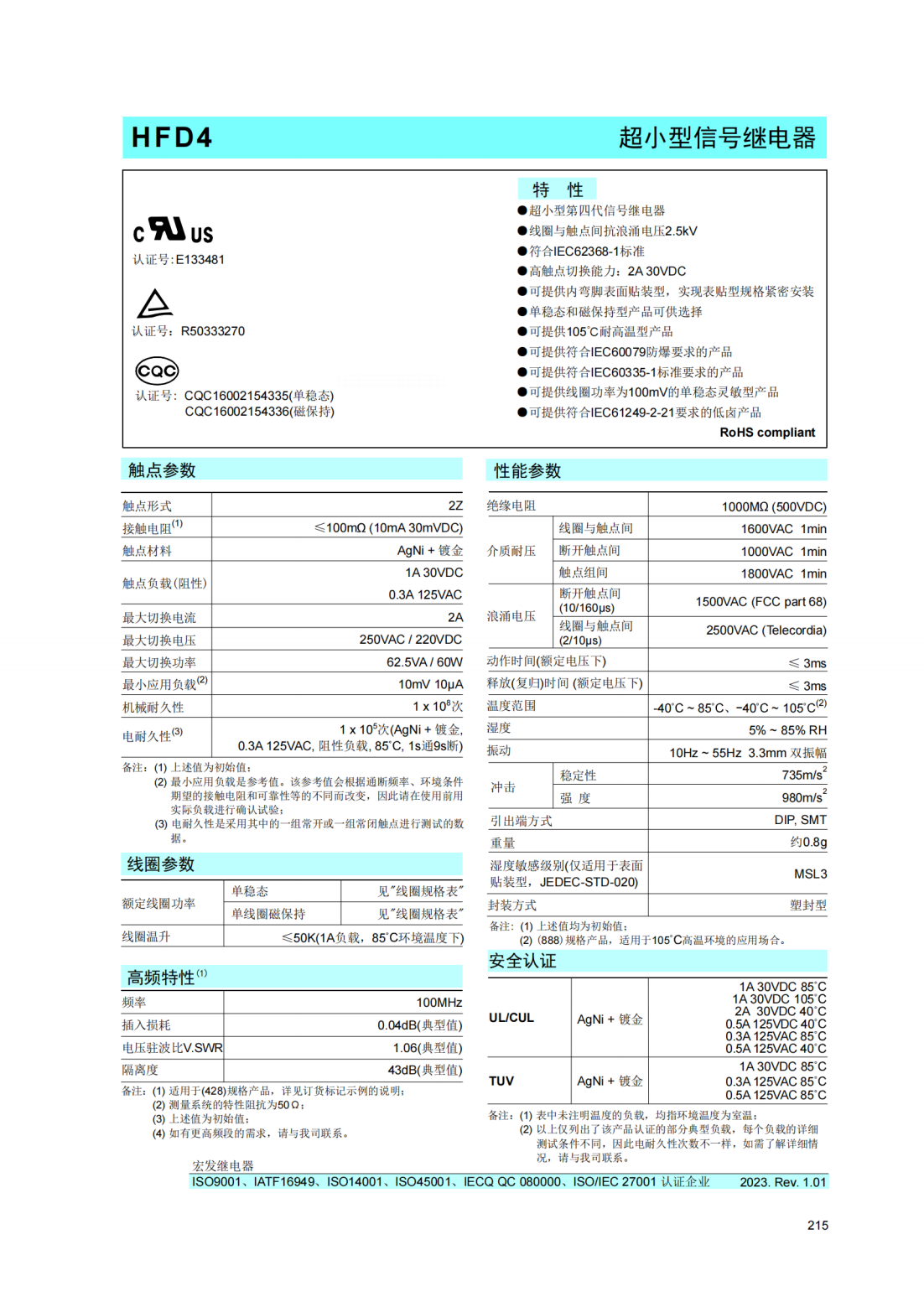 HFD23-012-1ZS4宏發繼電器