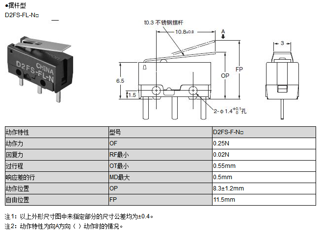D2FS-FL-N歐姆龍微動開關
