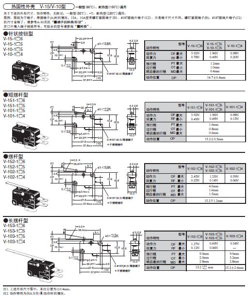 V-15歐姆龍微動開關