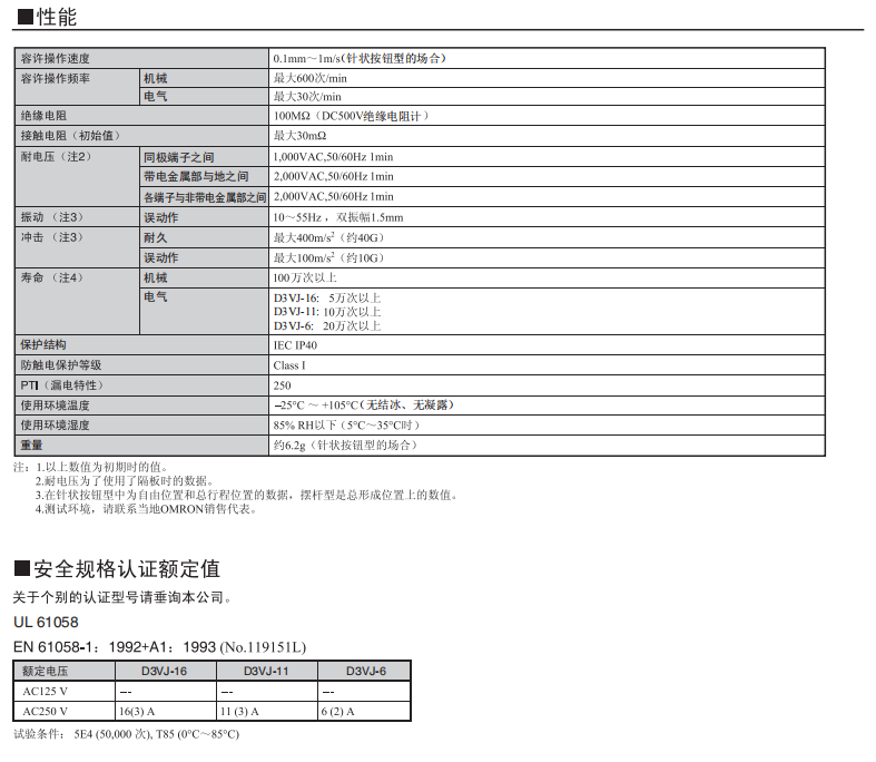 D3VJ小型微動歐姆龍開關