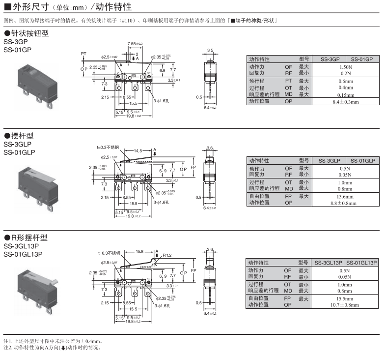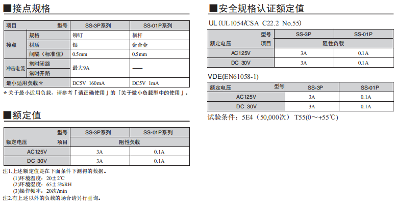 SS-P小型微動歐姆龍開關(guān)