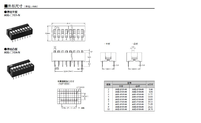 A6E-□104-N 歐姆龍開關(guān) 滑動(dòng)型盒型DIP開關(guān)