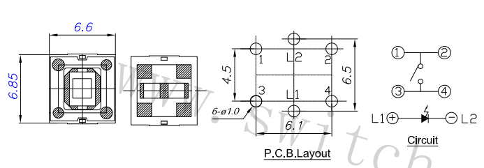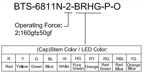 帶燈輕觸開關BTS-6811N-2-BRHG-P-O