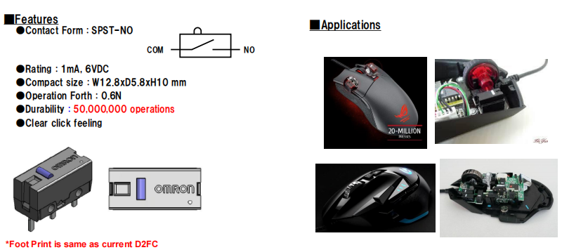 D2FC-F-7N 500萬次歐姆龍鼠標開關